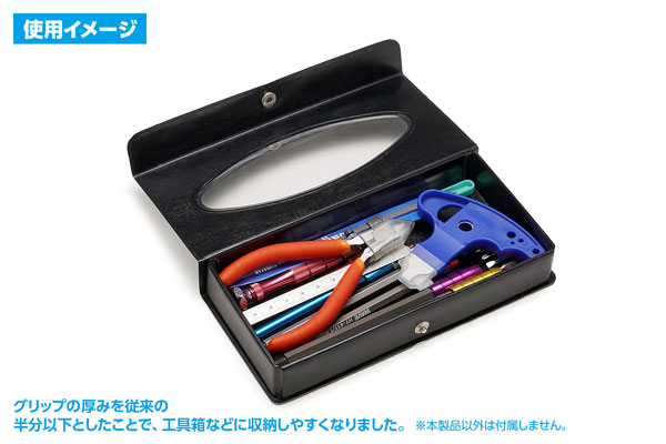 グリップの厚みを従来の半分以下としたことで、工具箱などに収納しやすくなりました。