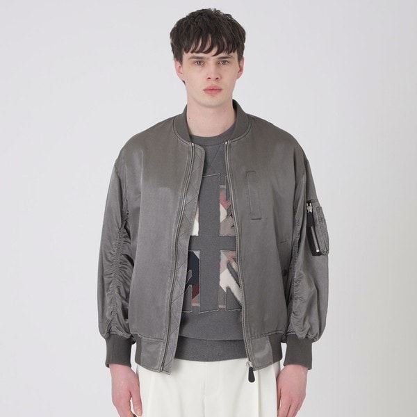 ミリタリーアウターの代表格であるMA-1をベースに、素材使いと加工によって現代的にアレンジした一着。