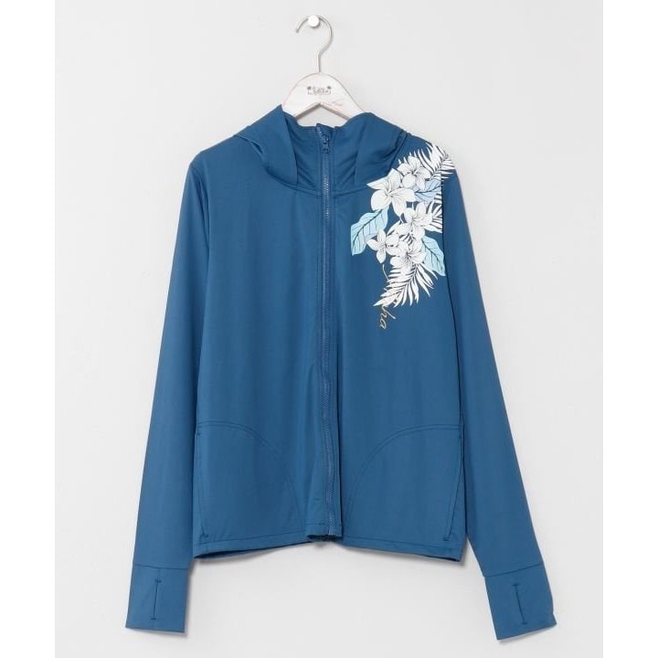 UVカット機能と吸湿速乾性を備えたジップパーカー。さらっとした素材感で夏の日差し対策にもぴったり。袖口には親指を通せる穴付きで、手の甲までカバーできます。