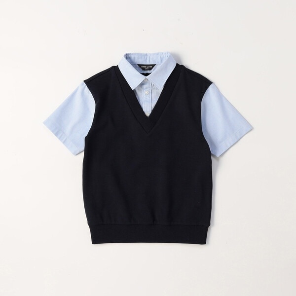オックスシャツとニットベストを合わせたようなレイヤードデザインで、