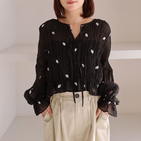 ■軽やかに華やぐ、花柄刺繍ギャザーブラウス■