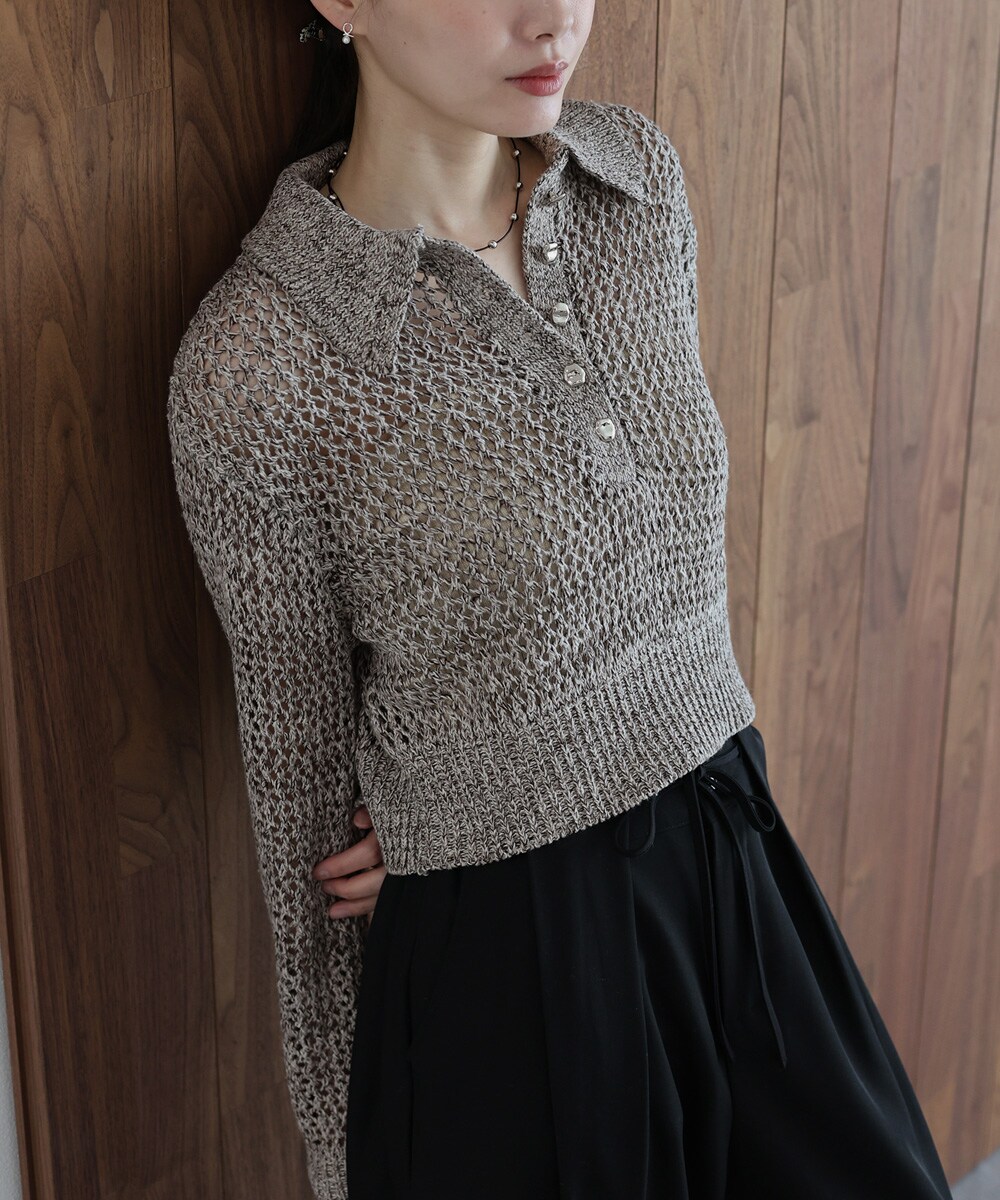メッシュポロニットトップス