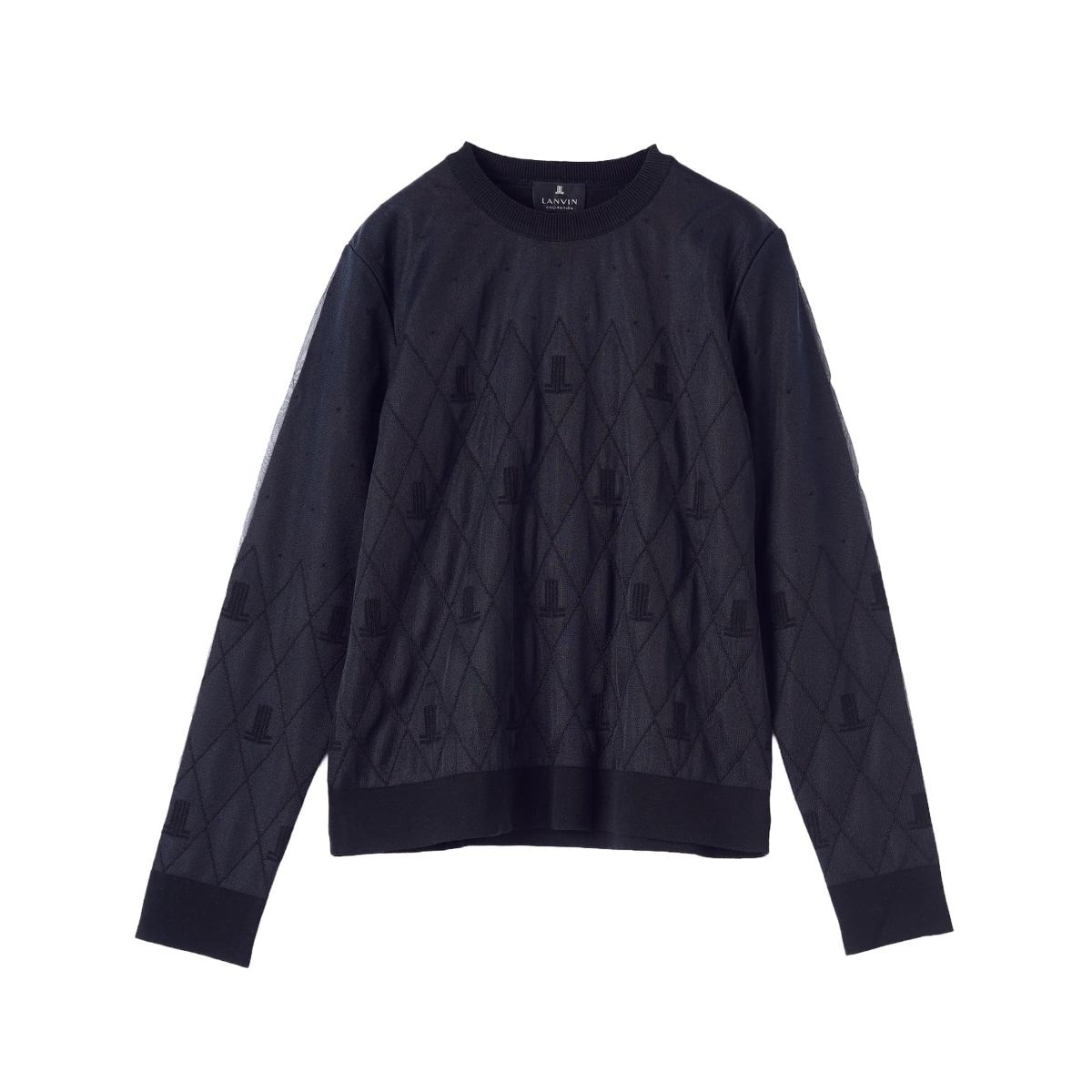 フロント全面に施されたダイヤ柄のジャカード編みが、クラシックでありながらモダンな印象を演出します。