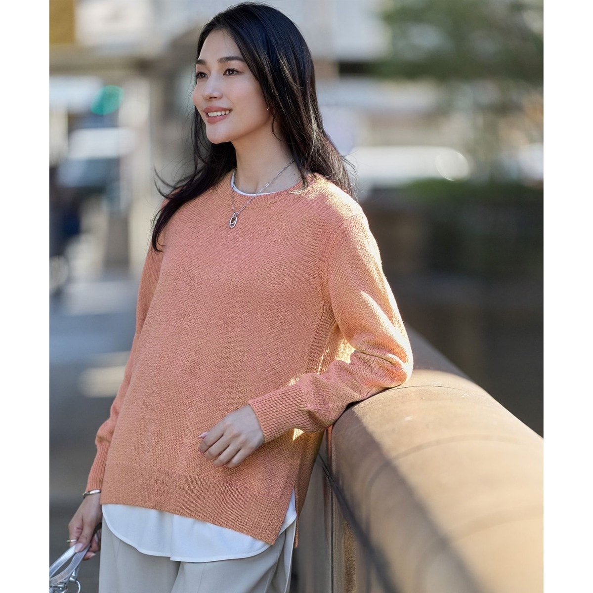 ■デザインシンプルな形ながら、素材の持つ洗練された表情感がサマになる、汎用性が高いクルーネックプルオーバー。ボディに沿いすぎない程良いゆるさのサイジングに加え、サイドにスリットを施すことで軽やかな抜け感を演出しています。パンツにもスカートにも合わせやすく、オフィスからデイリーまで幅広いシーンで活躍する一枚です。清涼感と上品な印象を併せ持った、ぜひ一度は手に取っていただきたいICBのニューベーシックアイテムです。