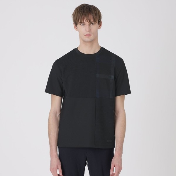 フロントをパッチワーク状に切り替えたTシャツ。部分的にチェック柄や凹凸感のある素材を取り入れる事でさり気ないアクセントに。同系色でまとめながらも、程良いデザイン性により一枚でも存在感あるTシャツに仕上がっています。