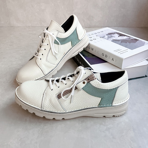 見た目は紐靴ながら、サイドに着脱用ファスナーを備えているため、ひもを結んだままでもスムーズに脱ぎ履きが可能です。