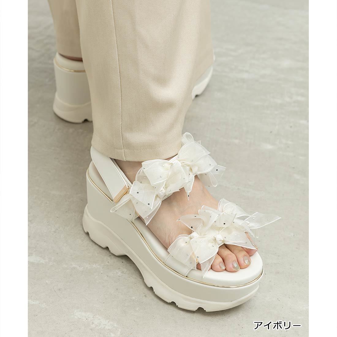 シューズ 合成皮革/人工皮革 / 無地 / ドット柄 / リボン / 25.0cm以上あり / 7.5cm以上 / その他(ヒール) / ふつう(D・E・2E) / ライフスタイル / カジュアル / その他サンダル / ベルクロタイプ / 中敷クッション入り