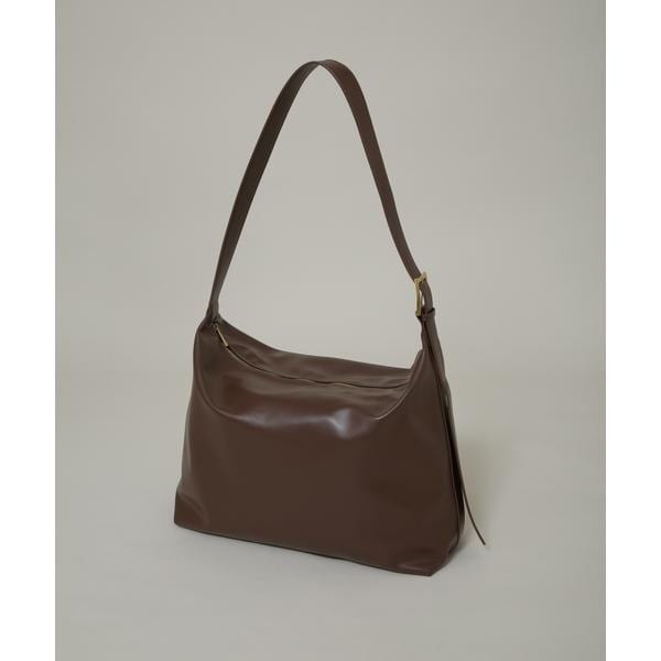 ベーシックなショルダータイプのフェイクレザーバッグ。「WARP PRINT」という手法で、カモフラージュ柄をプリントしたオリジナル素材をライニングに採用。独特な表情を持たせた裏地がアクセントになるバッグです。