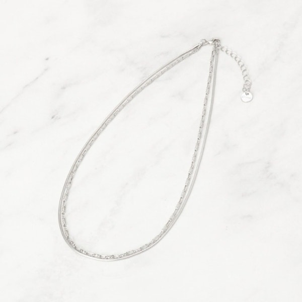 デザインの違うチェーンを2本組み合わせた2連ネックレス。