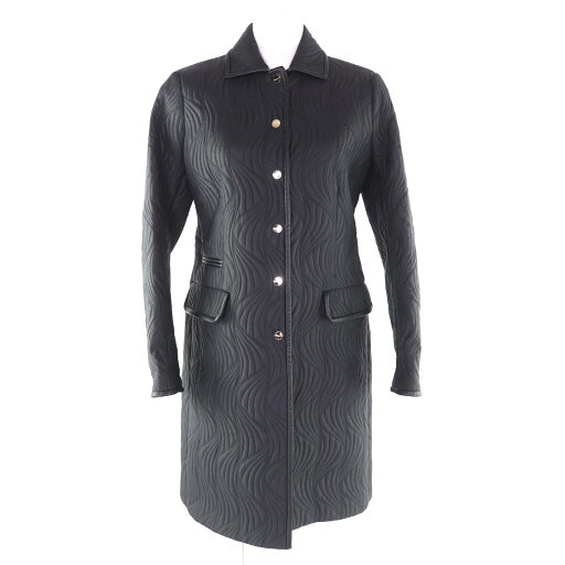 良品☆HERMES エルメス コットン100% シェーヌダンクル刺繍ポケット 半袖Tシャツ トップス ブラック 36 フランス製 正規品 レディース【中古】