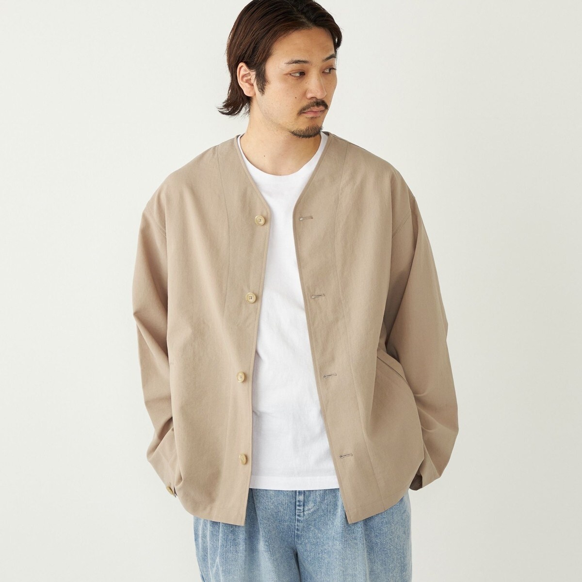 春夏のライトアウターとしてはもちろん、気温の低い日はパーカーなどを合わせたコーディネートもおすすめです。