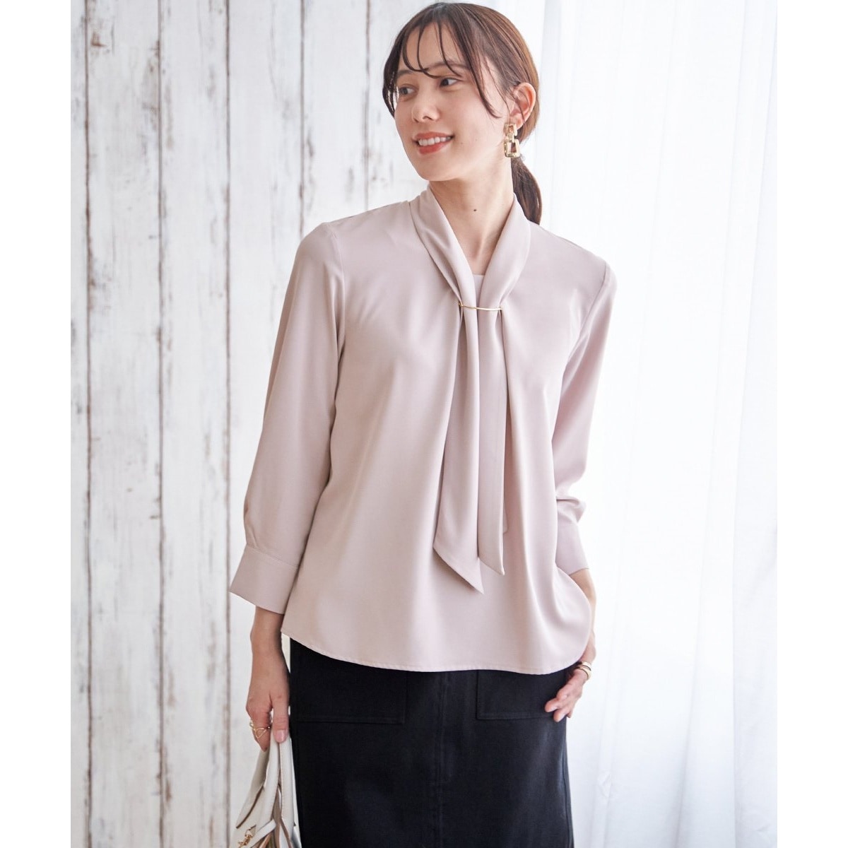 ボウタイの取り外しができ、さらにメタルバーを外した着こなしも楽しめる3WAY仕様のブラウス。