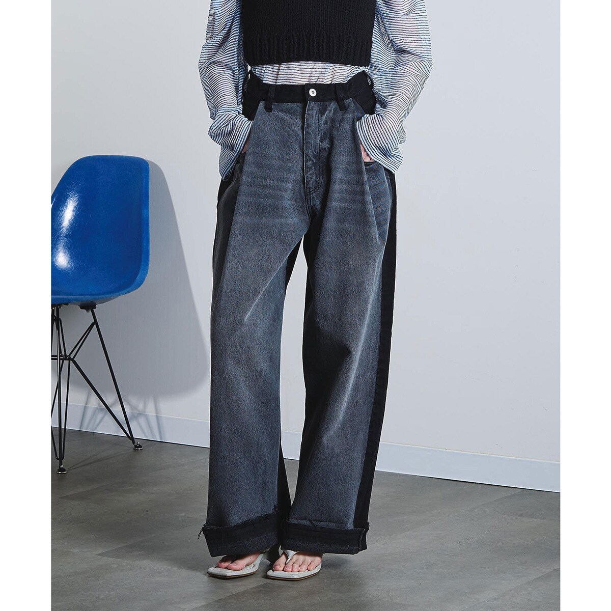 美品(mici)ラップデニムパンツ グレー ケミカルウォッシュ定価25300円