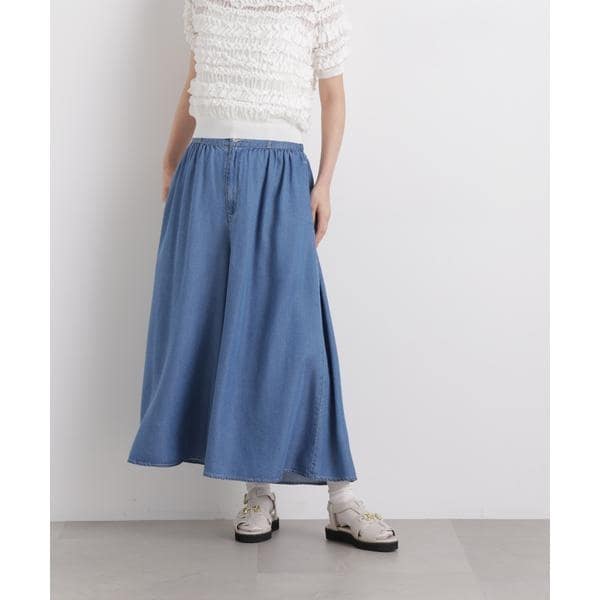 ブラック テンセルデニム 薄手 ワイドパンツ