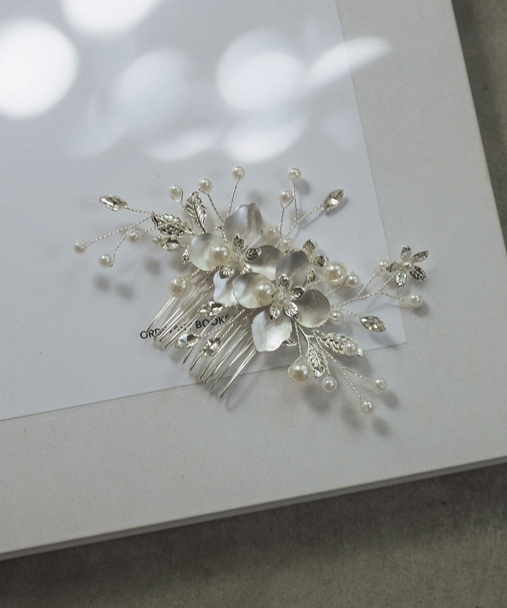 繊細なフラワーモチーフとパール、ビーズが贅沢にあしらわれたヘアコーム。