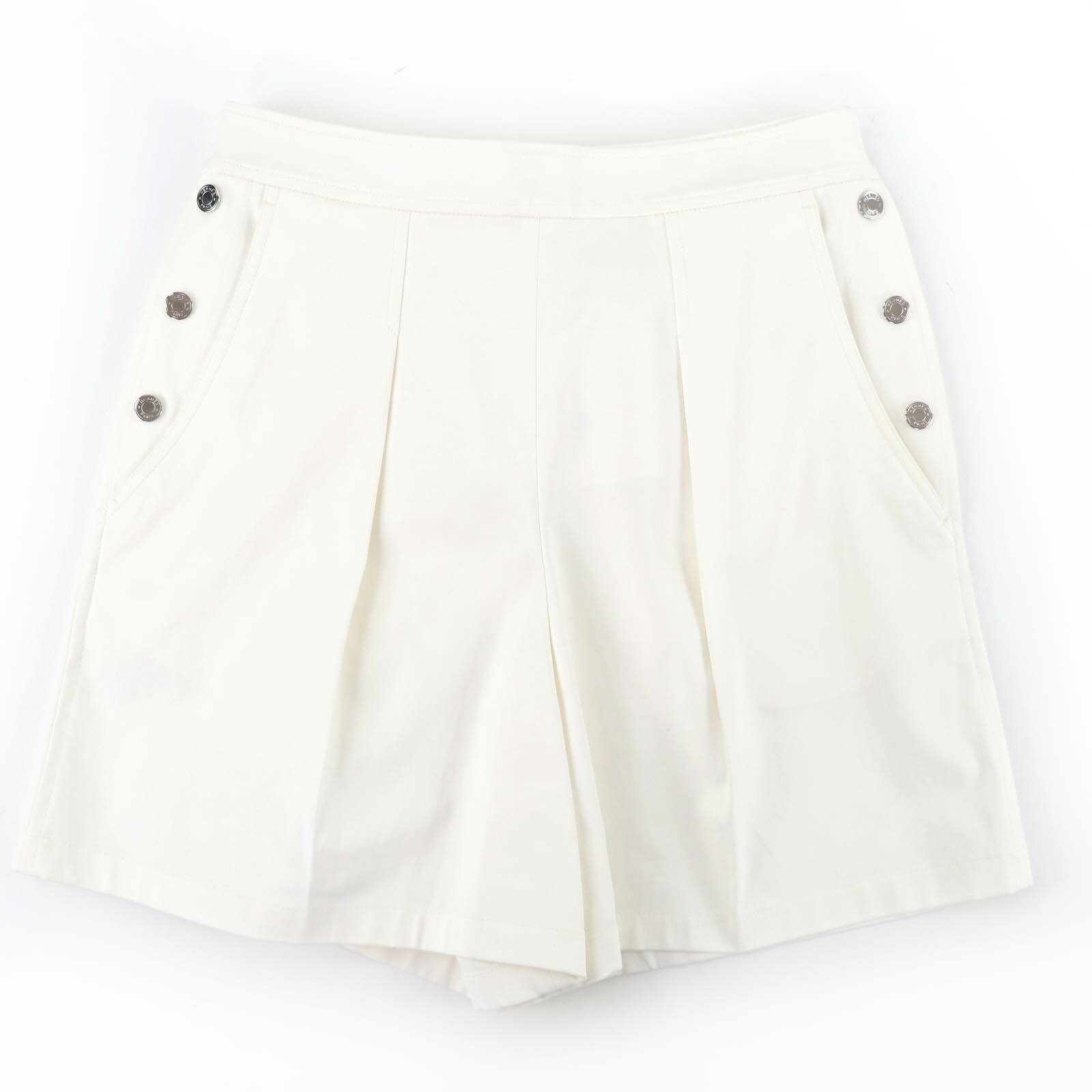 未使用品☆HERMES エルメス カレイドスコープ・エフェクト シルク100% クロップドパンツ ネイビー 40 フランス製 正規品 レディース【中古】