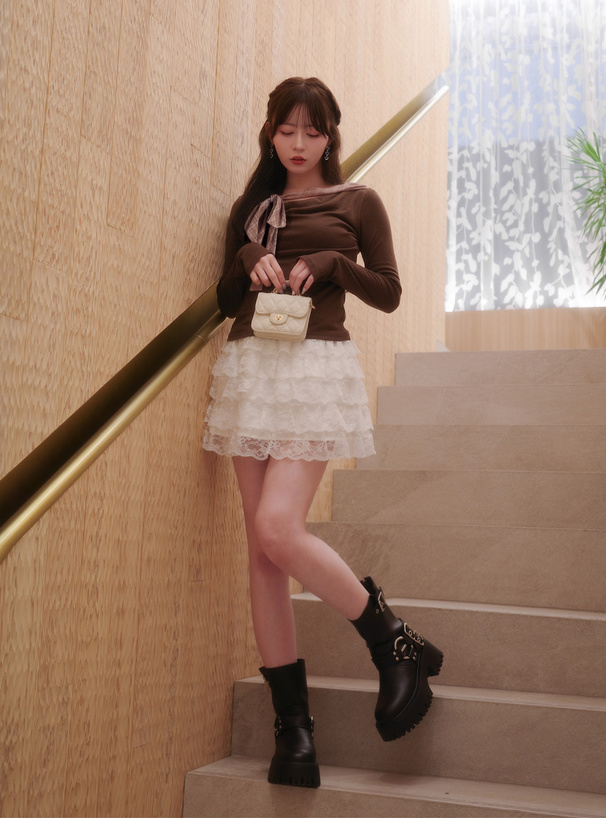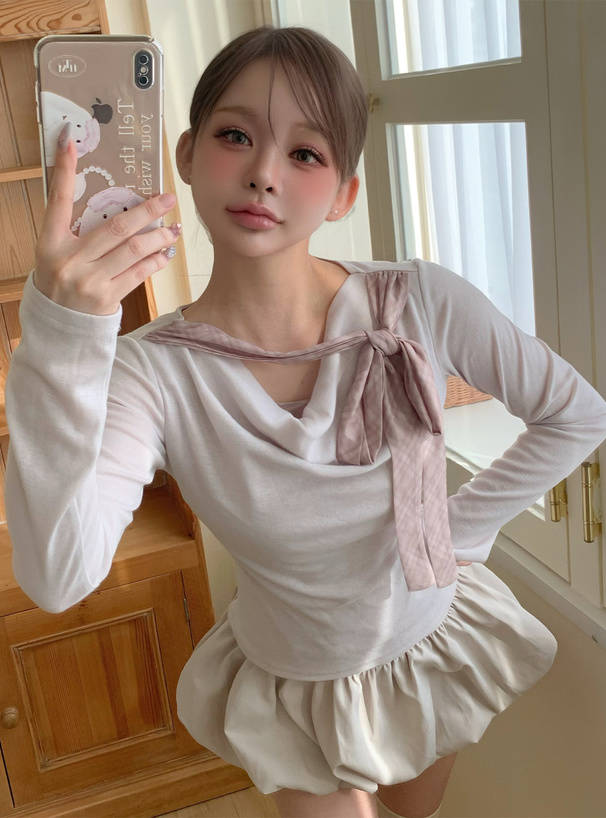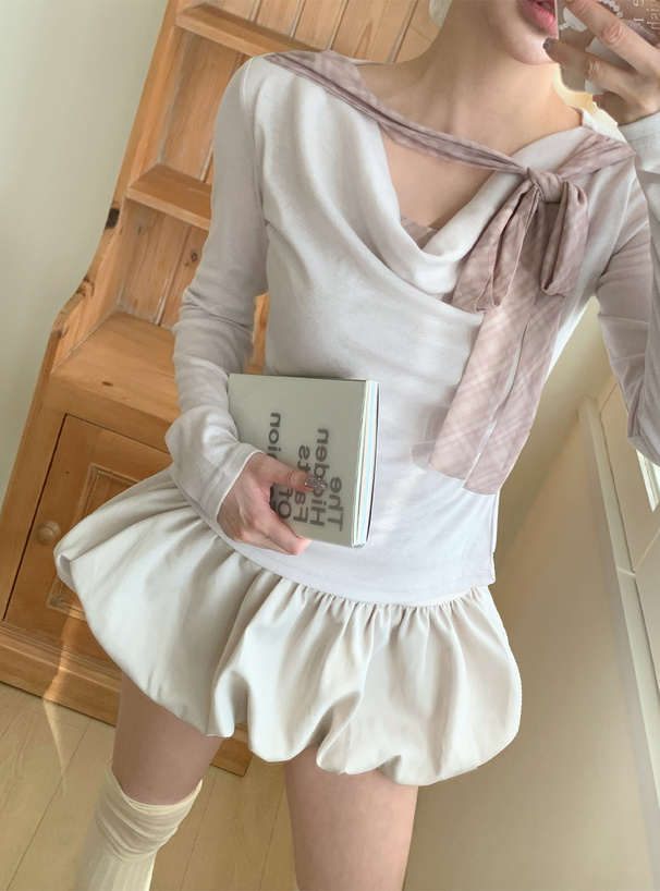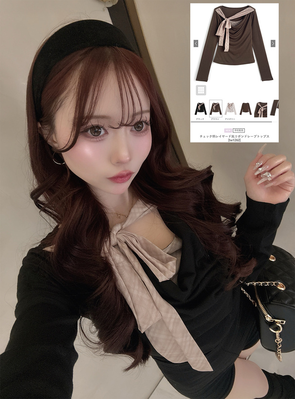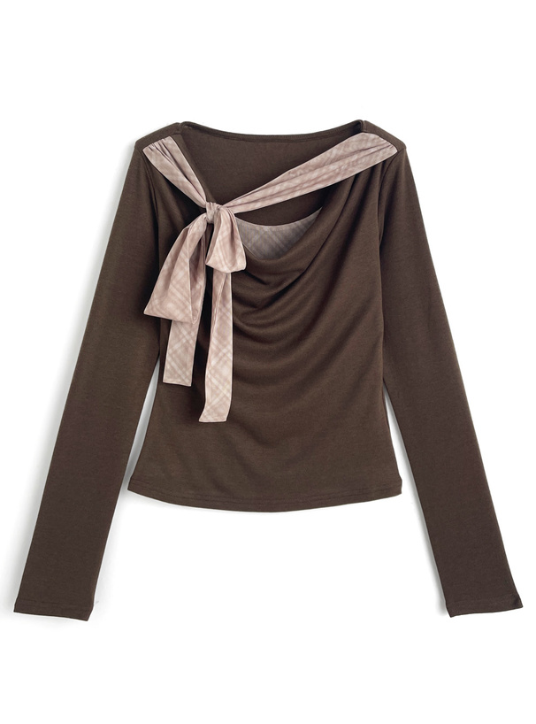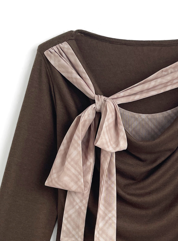チェック柄のシアー素材を使ったリボンディテールがアクセントに。