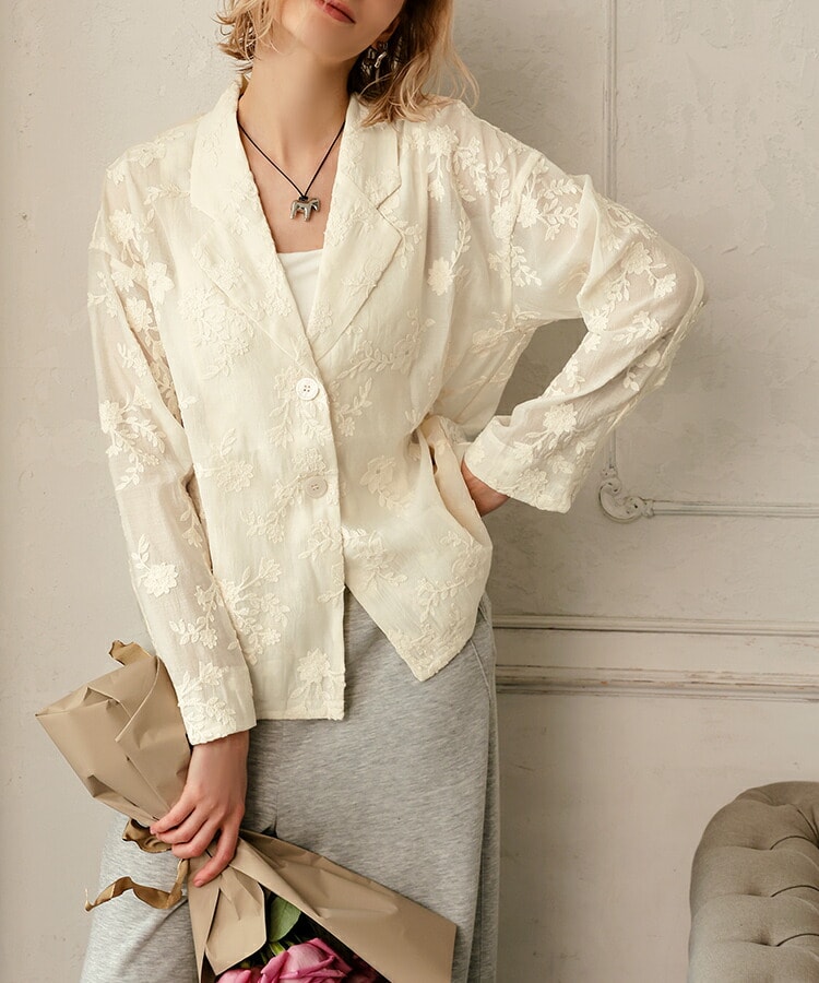 【pufe】フラワー刺繍ベロアジャケット