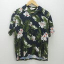 K■ハワイ製■パラダイスベイ/PARADISE BAY 花柄 半袖レーヨンアロハシャツ【S】紺/MENS■63【中古】