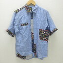 K■ミヤムスビ/雅結 和柄切り替え 半袖リネンシャツ【L】水色/MENS■59【中古】