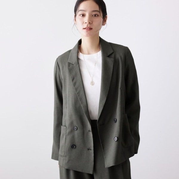 パッチポケットがほどよい抜け感をプラスし、ダブルボタンが縦ラインを強調してすっきり見えも叶えます。