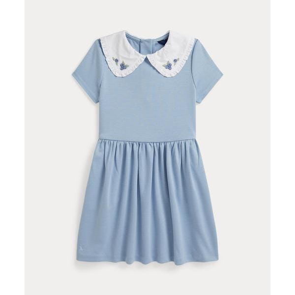 ニューイングランドの気取らない海辺の魅力にインスパイアされたポンチドレス。フィット & フレアのシルエットと、フリルトリムとブルーベリーの刺繍でアクセントをプラスしたコントラストの効いたブロードクロスの襟が特徴。・フィット & フレアのシルエット・右裾にシグネチャーのポニー刺繍・ブロードクロスのピーターパンカラー、フリル付き / 襟にブルーベリーの刺繍 / 背面中央にボタン付きプラケット・半袖・シャーリング入りのウエスト / サイドシームポケット※商品の色味は、光のあたり具合など諸条件により色感が多少異なって見える場合がございますので予めご了承下さい。 【素材】・本体:ポリエステル 69%、レーヨン 29%、ポリウレタン 2% 装飾部分を除く【生産国】インドネシア