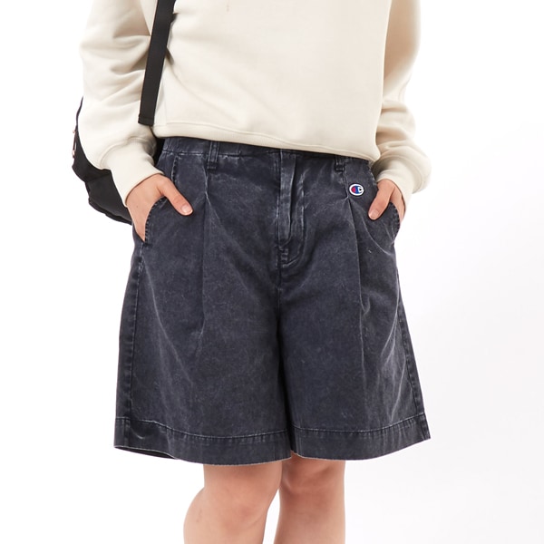 100%コットンのツイル素材を使用したショーツです。腰から裾にかけてワイドなバギーシルエットで、ヒップ周りはゆったりしたフィット感。ウエストにドローストリング付きで、ベルトループもあるため、好みの方法でサイズ感やフィット感を調節できます。両サイドにポケット付き。ユーズド感を持たせる加工により、柔らかな風合いやアタリ感、色落ちなどのヴィンテージテイストを演出しています。