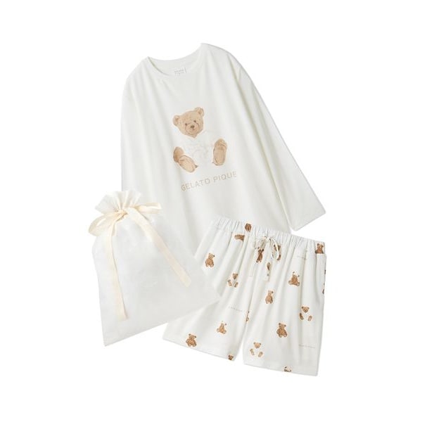 <b>【ラッピング済み】抗菌防臭バスローブベアワンポイントロンT&ショートパンツSETをギフト巾着にラッピングしてのお届けになります。(オフィシャルサイト、ウサギオンラインのみショッピングバッグ付き)</b>