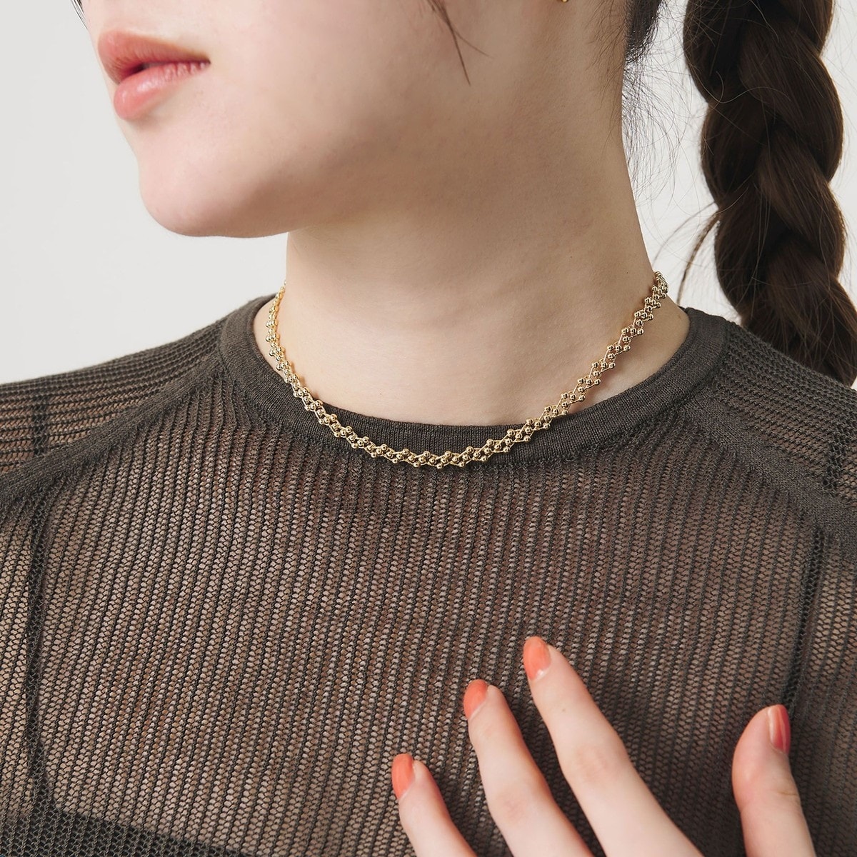 繊細なムードを纏うチョーカーネックレス