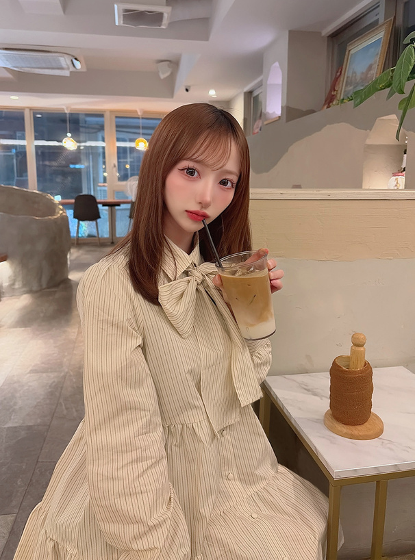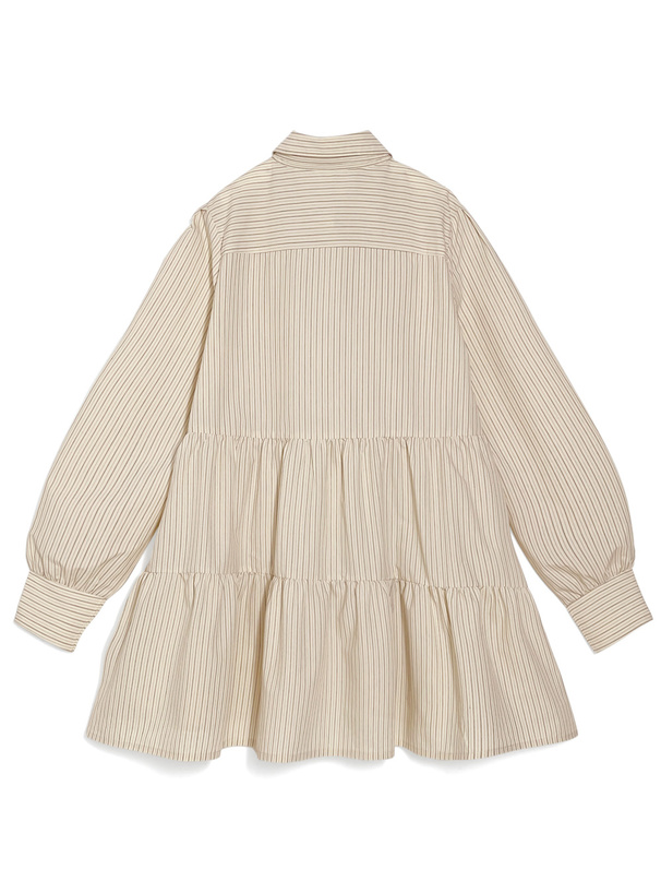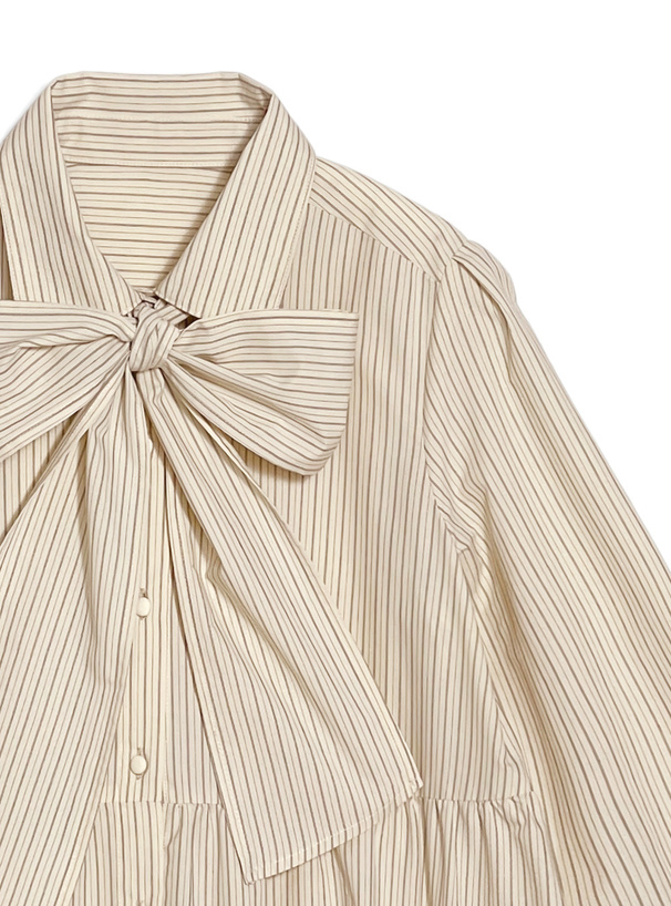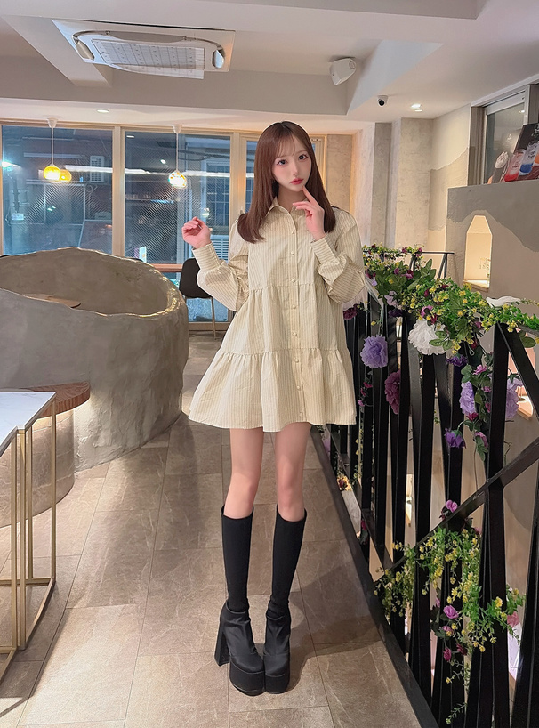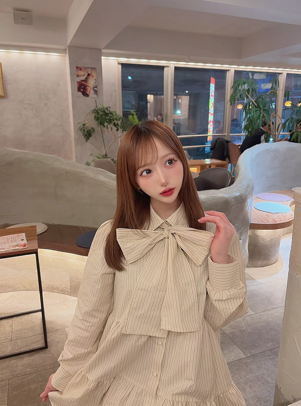 リボン付きストライプ柄フリルシャツミニワンピース[gn566]