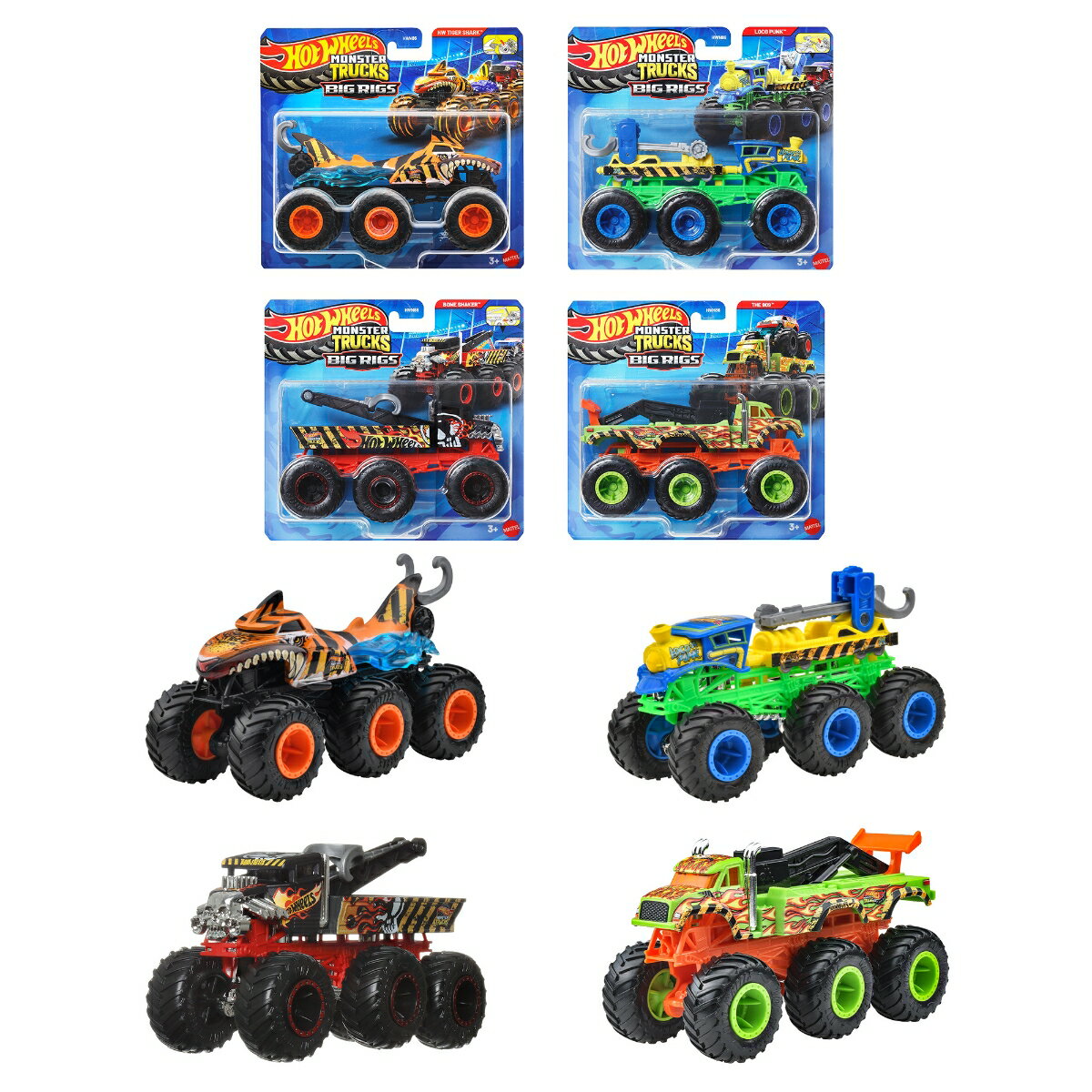 【内容】モンスタートラックを2通りで運べる6車輪のモンスタートラックが登場!モンスタートラックを上に載せたり、引っ張ったりして運ぶことができます。「The 909」が新金型で登場です。【内訳】タイガー・シャーク(HW Tiger Shark™)x1、ボーン・シェイカー(Bone Shaker™)x1、ロコ・パンク(Loco Punk™)x1、The 909(The 909™)x1、合計4点【原産国】タイ 【対象年齢】3歳〜【BOX入り】BOX販売のため、専用の段ボールに入っています。専用段ボールは商品がピッタリ収まるため、大切なコレクションを保管するのに最適です。【Brandについて】カリフォルニア生まれ 1秒間に16台売れているミニカー。【ホットウィール】Hot Wheels=「かっこいい車!」独特な南カルフォルニア風の外観、高速に動くホイール、(当時の最新技術!)そして 赤いラインの入ったタイヤ。現在、世界で一番売れているミニカーです*。*Circana/Retail Tracking Service/G12/JAN-DEC 2023/Total Toys/Projected Units【プレゼントに最適】お誕生日、クリスマスプレゼント、入園・入学祝いなど記念日でのプレゼントにぴったりです。【対象年齢】:3歳以上【商品サイズ (cm)】(幅×高さ×奥行):17.8×16.5×7