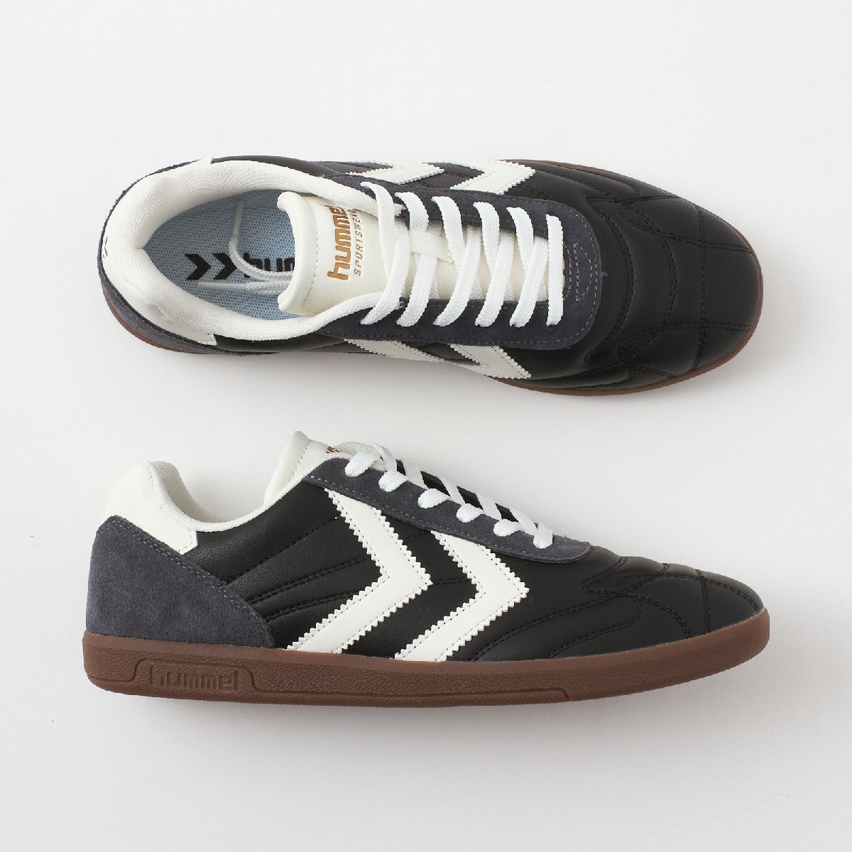 サッカースパイクから着想を得たクラシックデザイン SUPER MATCH。アッパーにはステッチ入りのレザー調素材を採用し、スパイクのようなスポーティな表情を演出。サイドのhummelシェブロンがアクセントとなり、ガムラバーソールがグリップ力と耐久性を両立。ピッチのスピリットを日常に落とし込んだ、フットボールファン必見のライフスタイルスニーカーです。