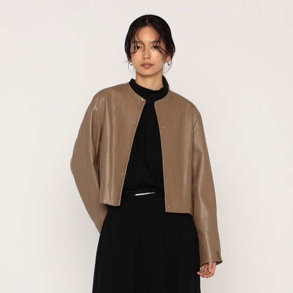 カーデガンの様にさらりと羽織れる、ラムレザーの軽さと柔らかさを 最大限に引き出した、トルコラムレザー ノーカラージャケットです。