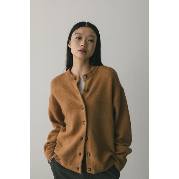 BLU:モデル身長170cm(FREEサイズ着用)IVO,CAM:モデル身長168cm(FREEサイズ着用)暖かさと着心地の良さをかなえたウールニットカーディガン。抜け感のあるルーズなシルエットでボトムスを選ばずに着用いただきやすい一枚です。同素材のワンピースやニットプルオーバーとのスタイリングもおすすめです。透け感なし、ストレッチあり。【お手入れ方法】ドライクリーニング