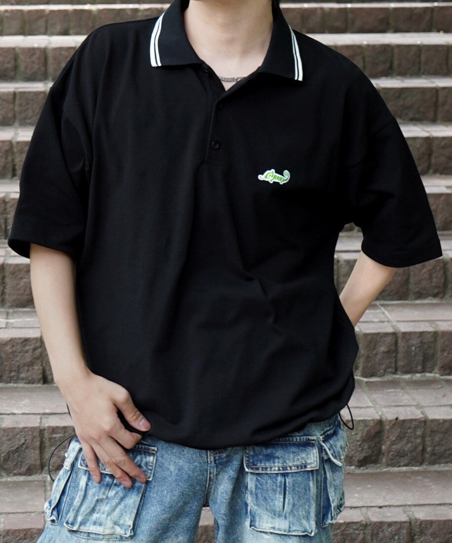 さりげないワンポイント刺繍と襟元のラインがアクセント。