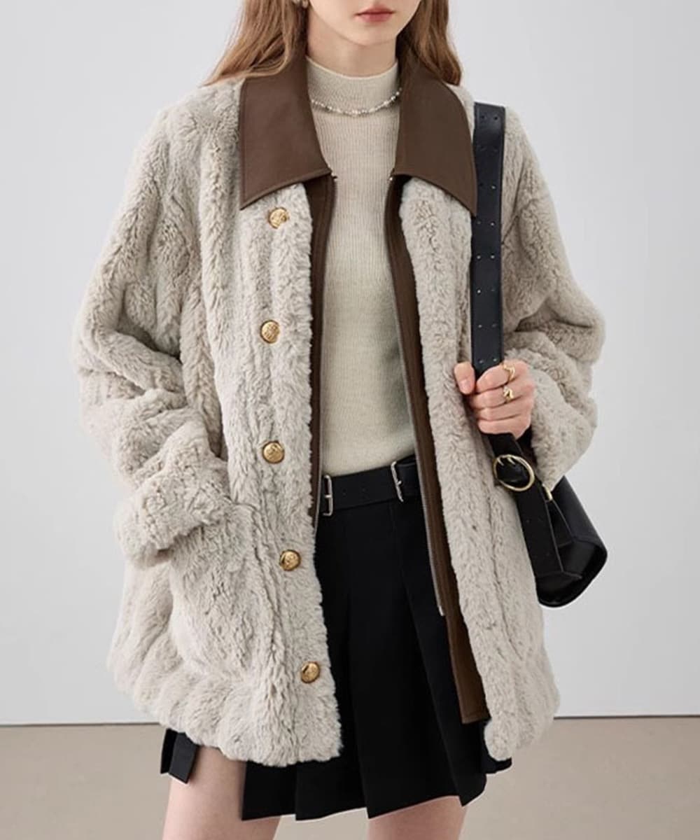 合皮と柔らかい毛が絶妙に組み合わさったデザインのジャケット。 トレンド感あふれる秋冬の要素と相まって、保温性だけでなく、快着心地にもこだわり、おしゃれな女性に不可欠な一着です。 体の隠れた部分をうまくカバーし、女性らしい曲線を引き立てます。