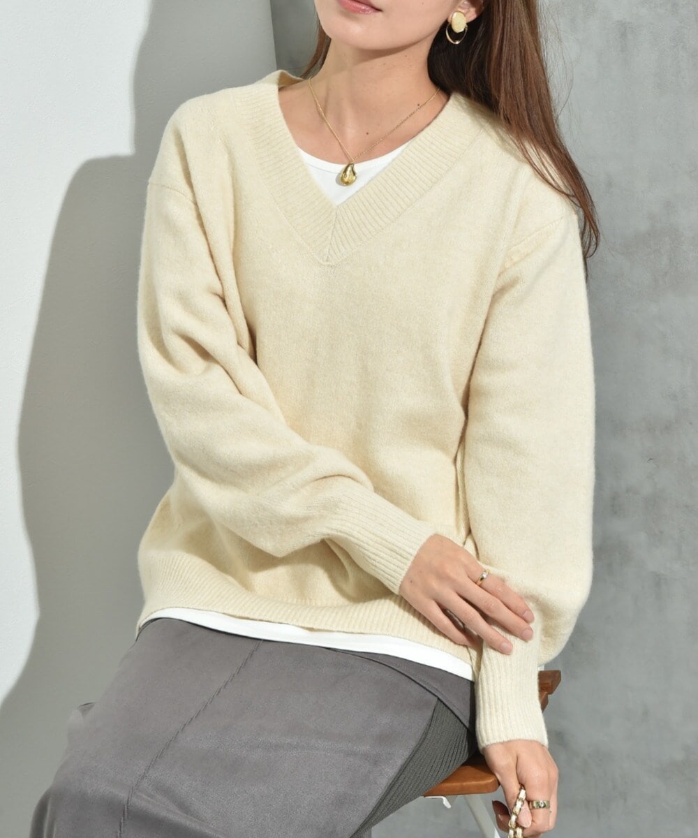 JOURNAL STANDARD カシミヤ混ウール12G天竺Vネックプルオーバー