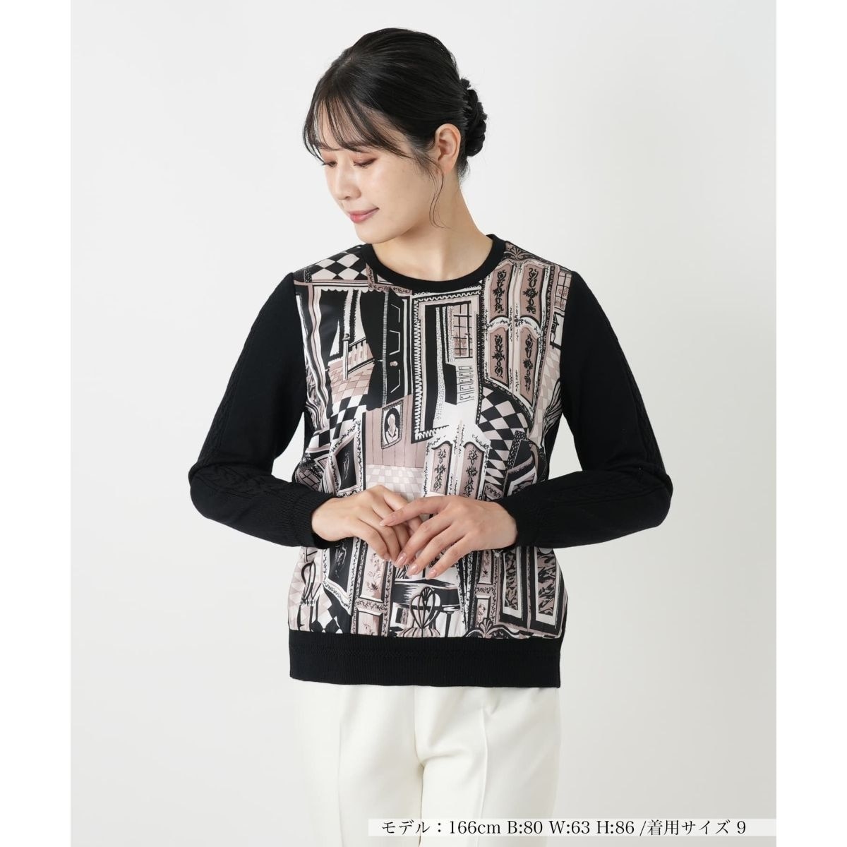 フロントのプリントと袖と後ろ身頃はシンプルなニットで切り替えた、デザイン性の高いクルーネックニット。ユニークなプリントが、一枚で着映えする存在感を放ちます。袖と後ろ身頃にはニット素材を使用し、快適な着心地を実現しました。やや厚手の生地感なのでこれからの季節の一枚着としても最適。シンプルなボトムスに合わせるだけで、モダンかつ洗練されたスタイルが完成する主役級のトップスです。