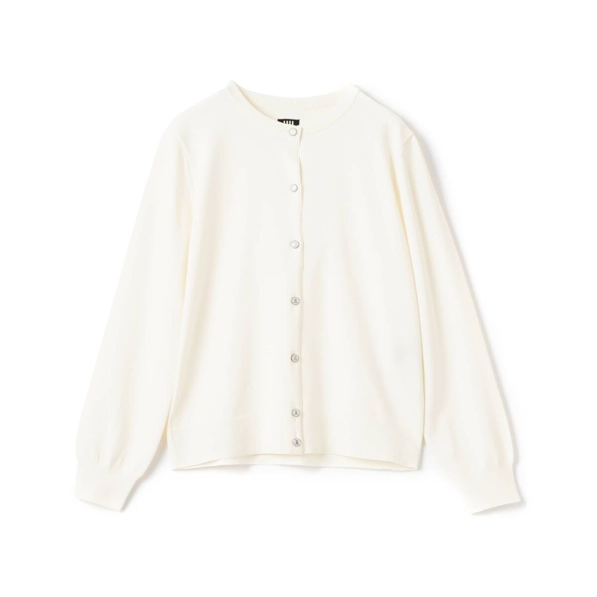プレーンなニットカーディガンが吸放湿性に優れた糸を使うことで快適な着心地に。