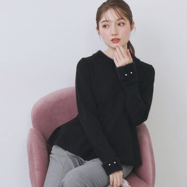 上品フェザーが引き立つスタイルアップ効果の高いペプラムニット