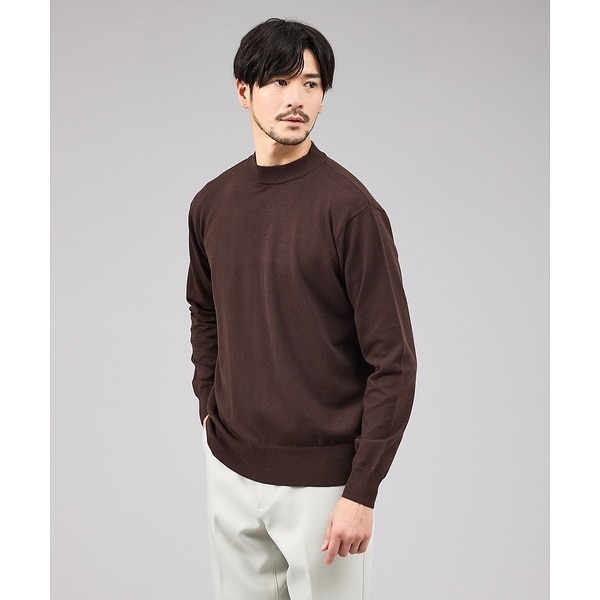 ハイゲージ(12G)で編み立てた一枚は、インナーとしても活躍するモックネック仕様。