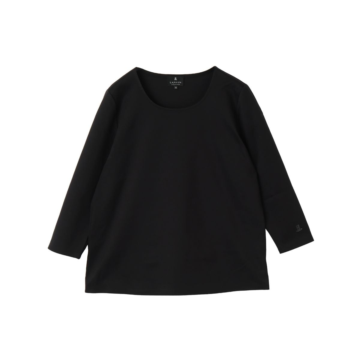 程よいフィット感とストレッチ性のある素材で、快適な着心地を提供します。襟元は開きすぎないラウンドネックで上品な印象に。袖口にはさりげなくブランドロゴが施され、高級感をプラス。ジャケットのインナーとしても、単体での着用でも活躍する、シンプルながらも上質なアイテムです。