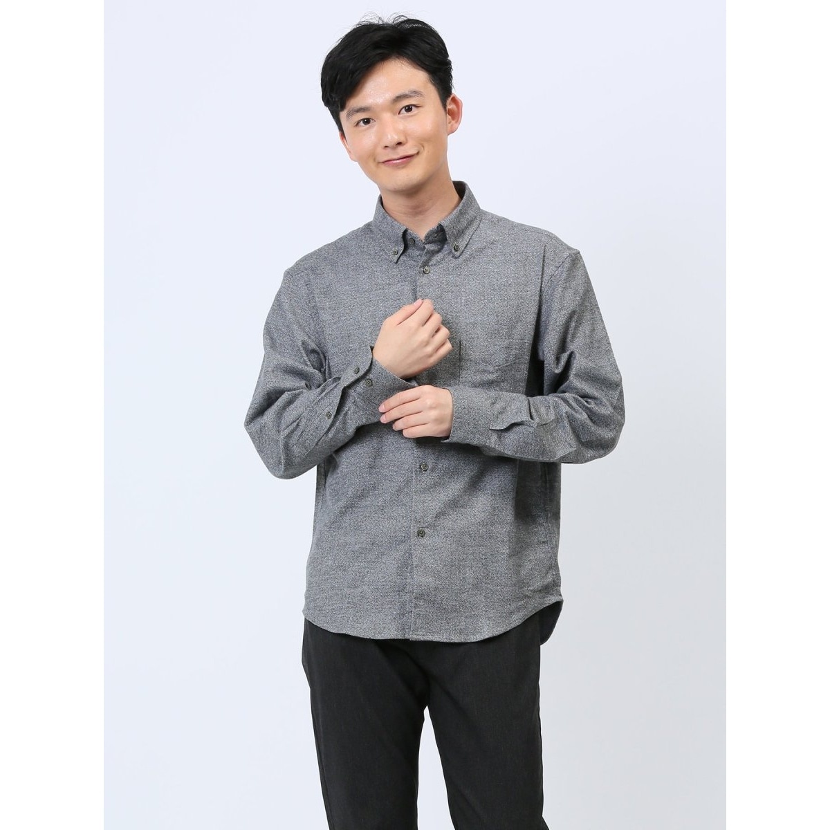メランジ起毛 ボタンダウン長袖シャツ