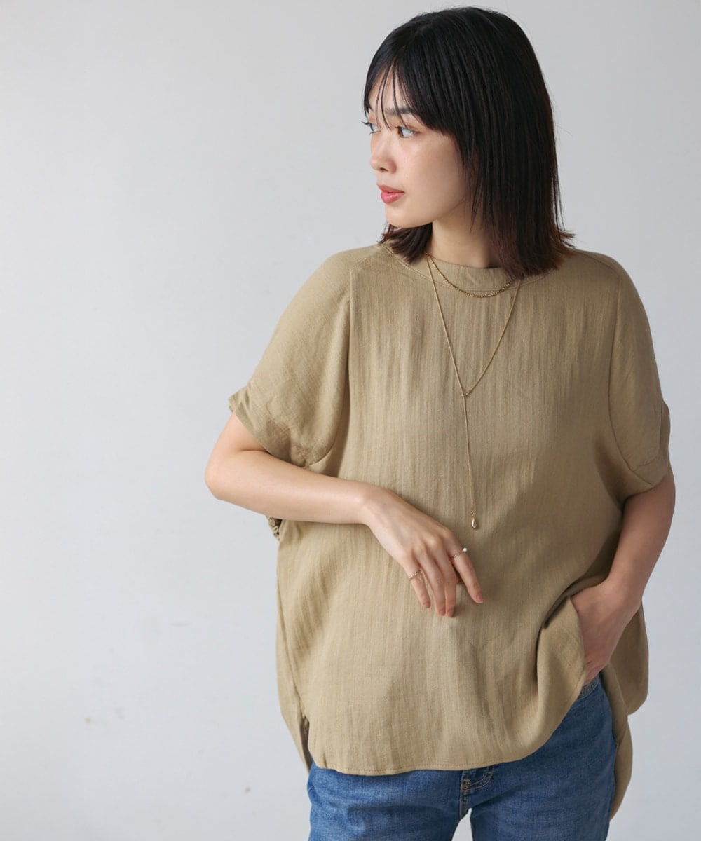 襟付きプルオーバー/2/コットン/リネン混/BEG/DWYB026