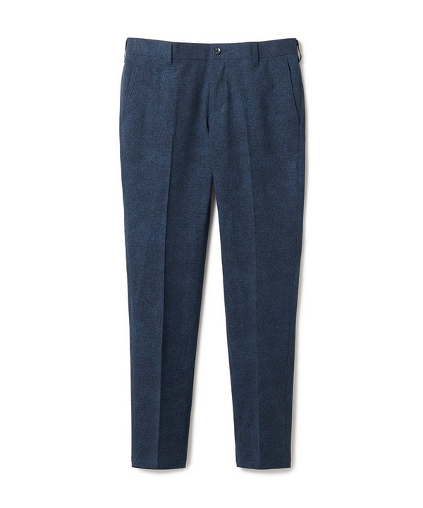 生地表面にはヘリンボーン×千鳥格子/デニム柄をプリントで表現。クラシックな柄使いによってスポーティに寄りすぎず、ブリティッシュテーラードの品格を感じさせる佇まいに仕上げました。