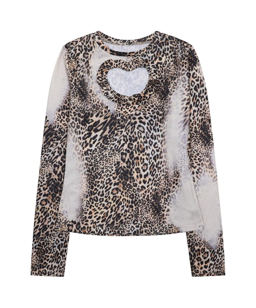 ワイルドなレオパード柄に、胸元のハート型カットアウトが個性を際立たせるロングスリーブトップス。透け感のある素材を使用し、セクシーながらもスタイリッシュな雰囲気に。タイトなシルエットが女性らしさを引き立てる一枚。
