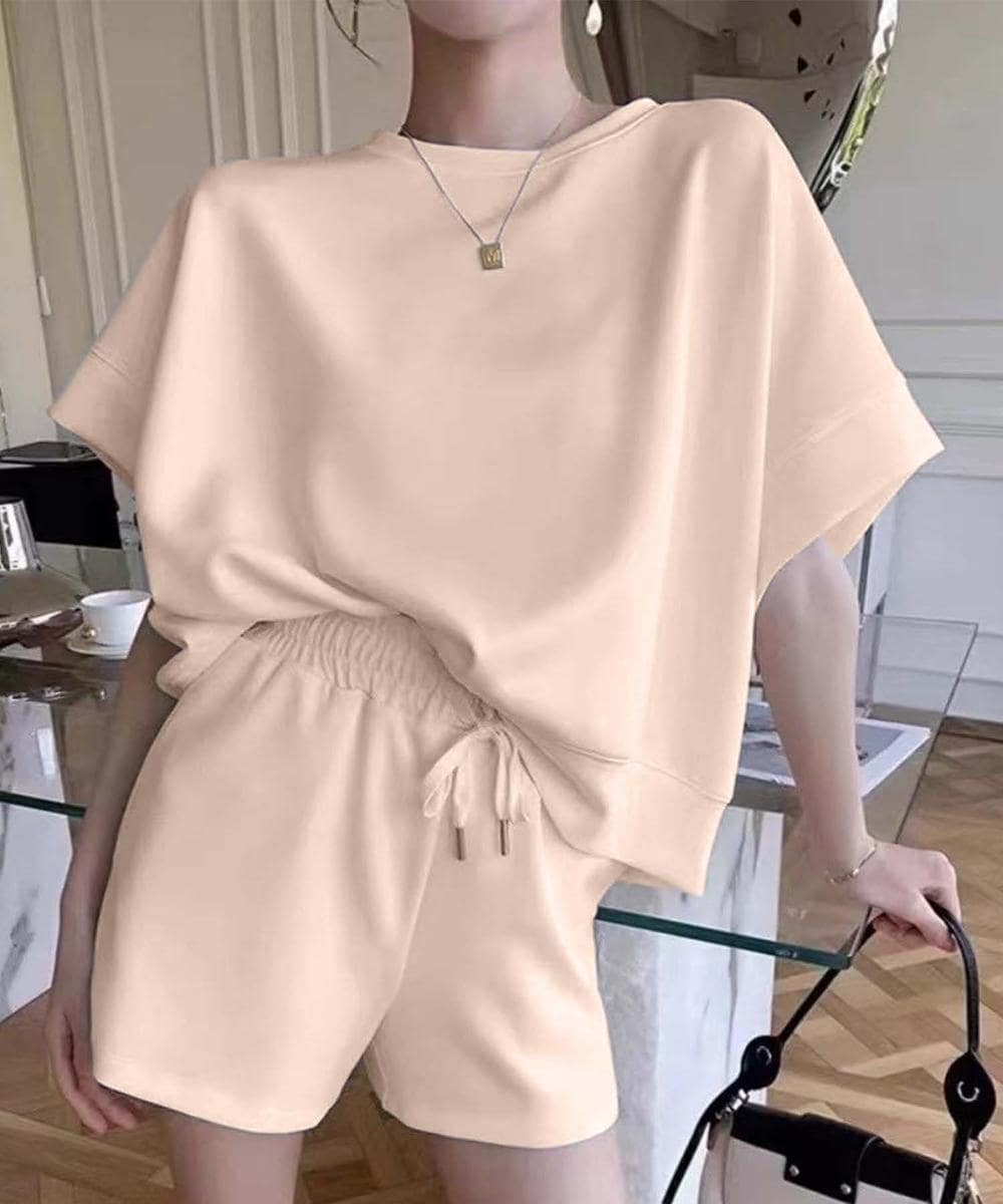 クルーネック半袖ニットトップス