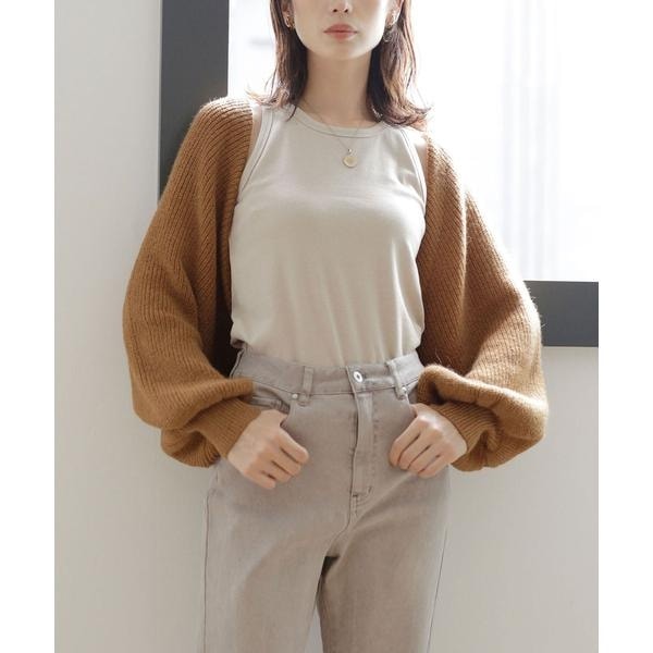 背中のレースアップデザインが女性らしいボレロ。ボリュームスリーブが作り出す包み込むようなシルエットに、ウエストをすっきりと見せる短めの着丈が好バランス。プリントワンピースと合わせたり、カットソーをインして配色にするなど様々なレイヤードを楽しめるひと品です。