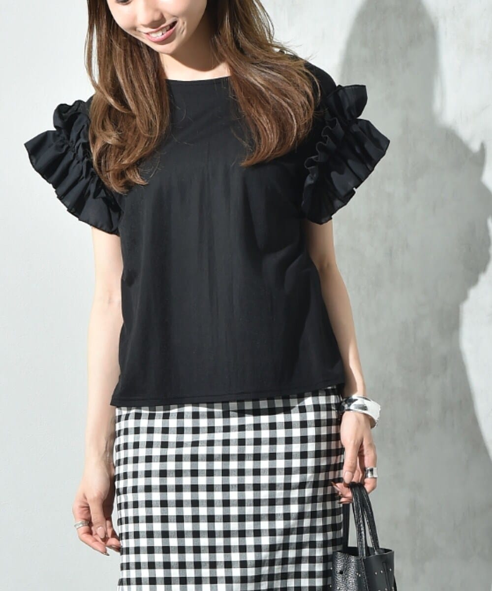 新品 INTERPLANET 【接触冷感】カノコ袖異素材切替ギャザープルオーバー