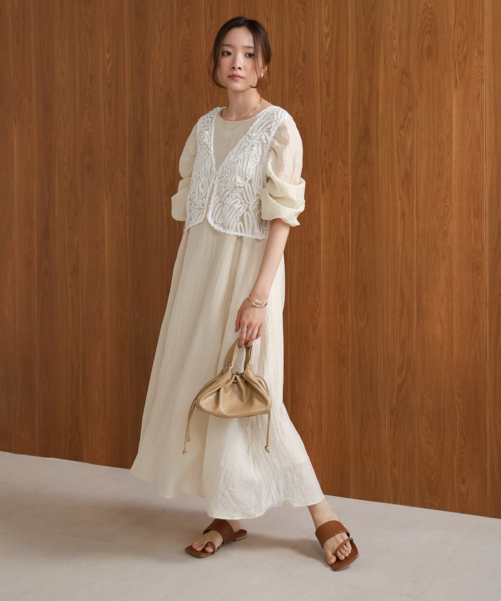 【低身長向けサイズあり】チュールレイヤードウエストドロストワンピース